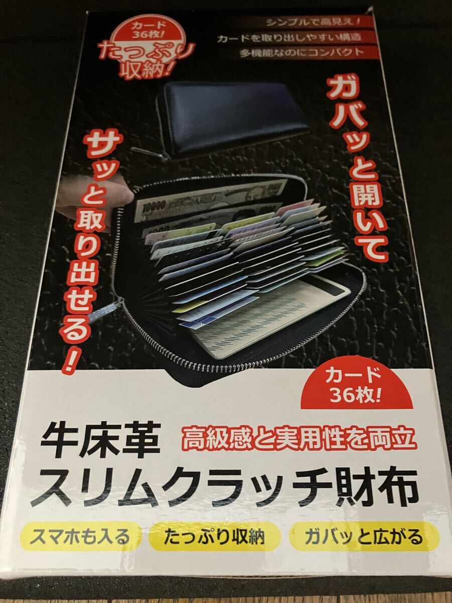 - 【新品未使用】牛床革スリムクラッチ財布 送料無料 カード36枚収納