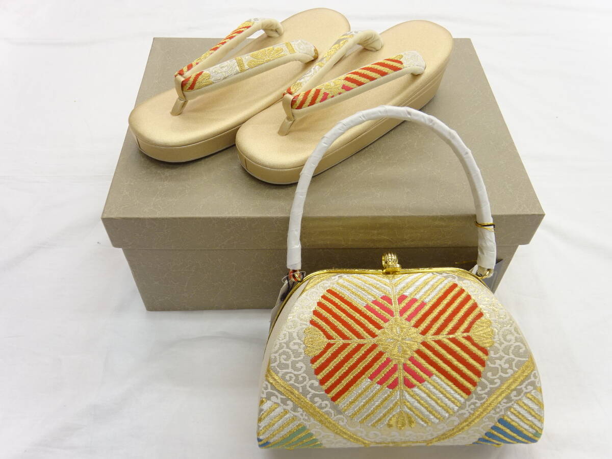 - 新品未使用★沙織製・振袖向き草履バックセット★L寸★松菱紋柄です