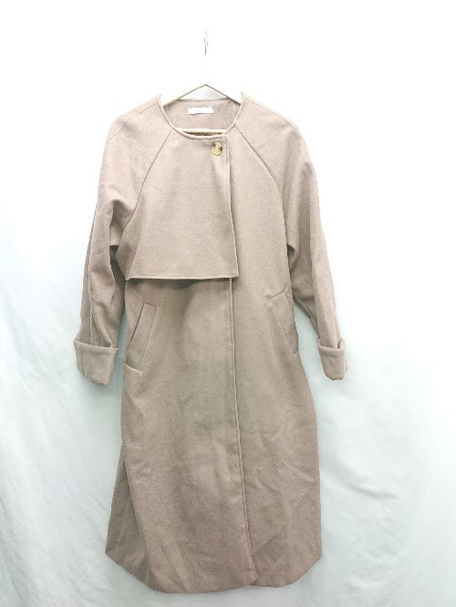 - ◇ ⊇ ECLIN ノーカラー 長袖 ロングコート サイズF モカベージュ レディース E