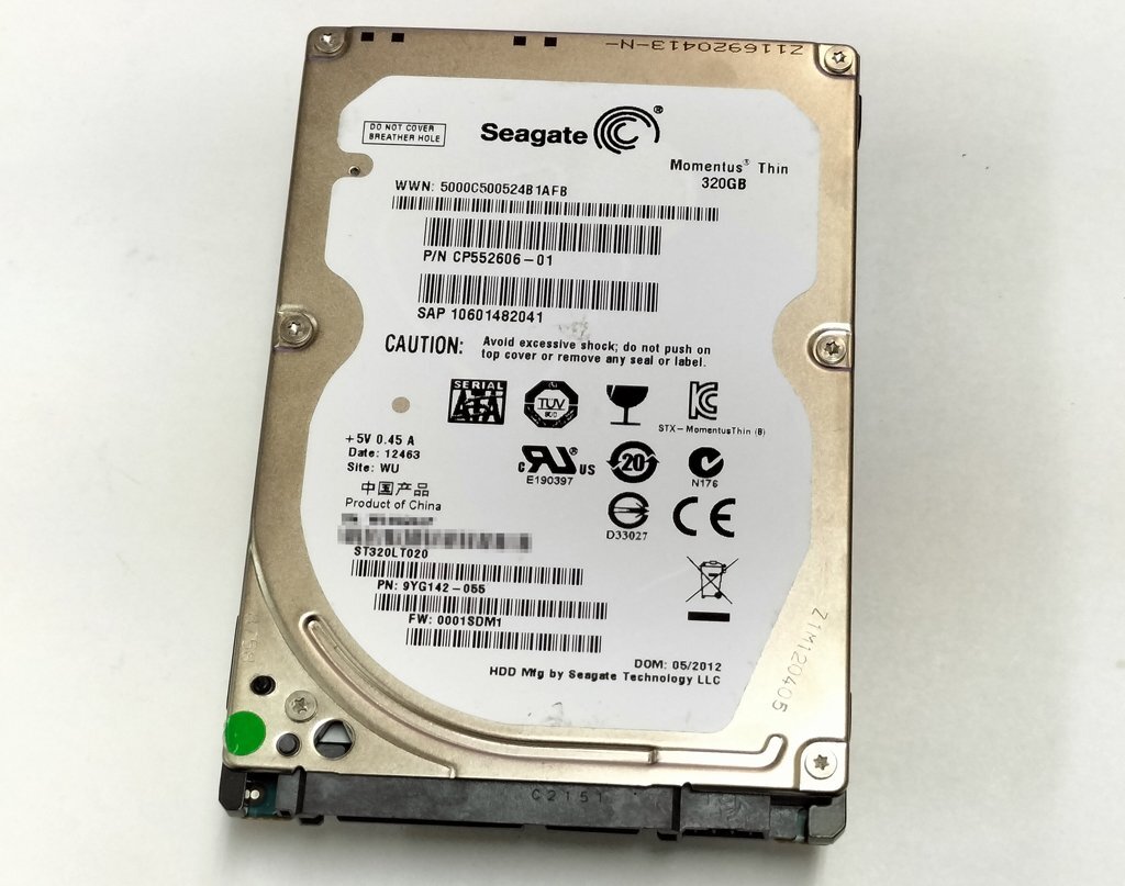 Seagate製のハードディスク ST320LT020-9YG142 です。
