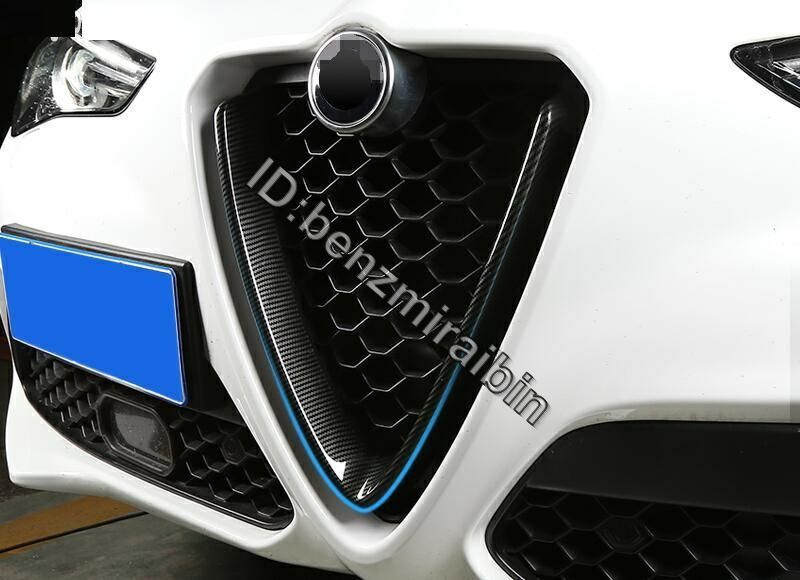 - カーボン柄 スタイル アルファロメオ ステルヴィオ 車 ヘッド グリル v フレーム 装飾 トリム ステッカー ロゴ カバー
