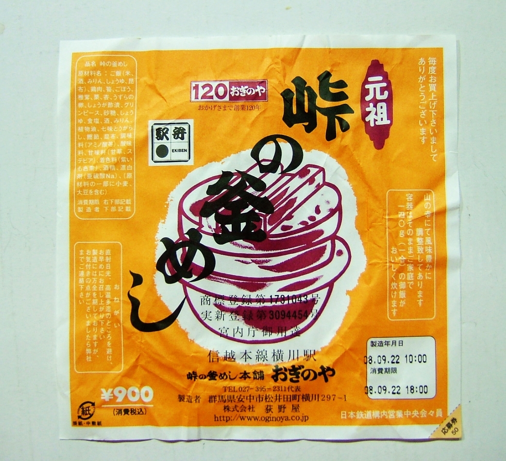 - 駅弁包装紙 信越本線横川駅 峠の釜飯 おぎのや ②