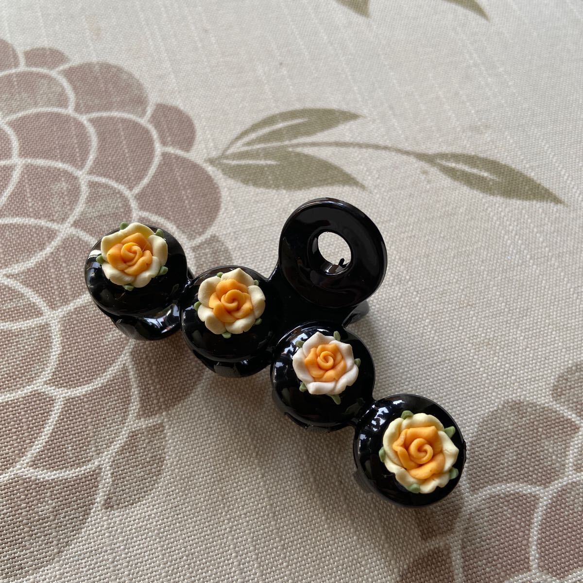 - 髪飾りクリップ バラ 薔薇 花 イエロー 黄色