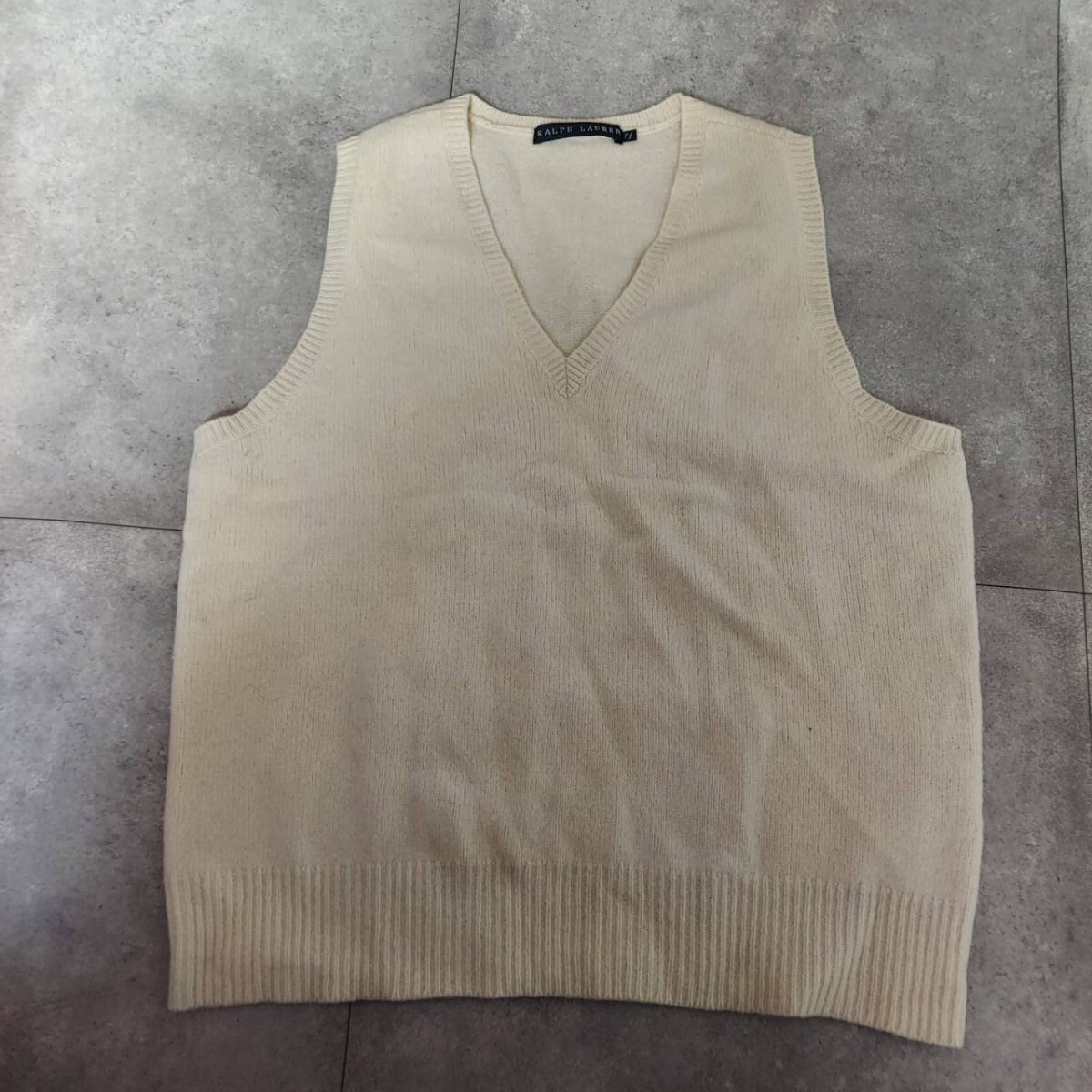 - RALPH LAUREN ラルフローレン ニット ベスト セーター Vネック 羊毛90% アイボリー