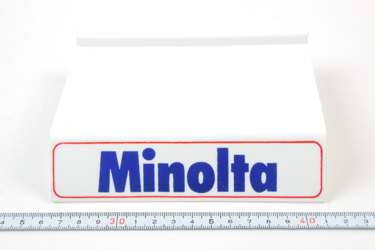 > ※ 非売品 希少 MINOLTA ミノルタ 展示台 ディスプレイ 青文字 15cm x 12cm x 3.5cm 13142