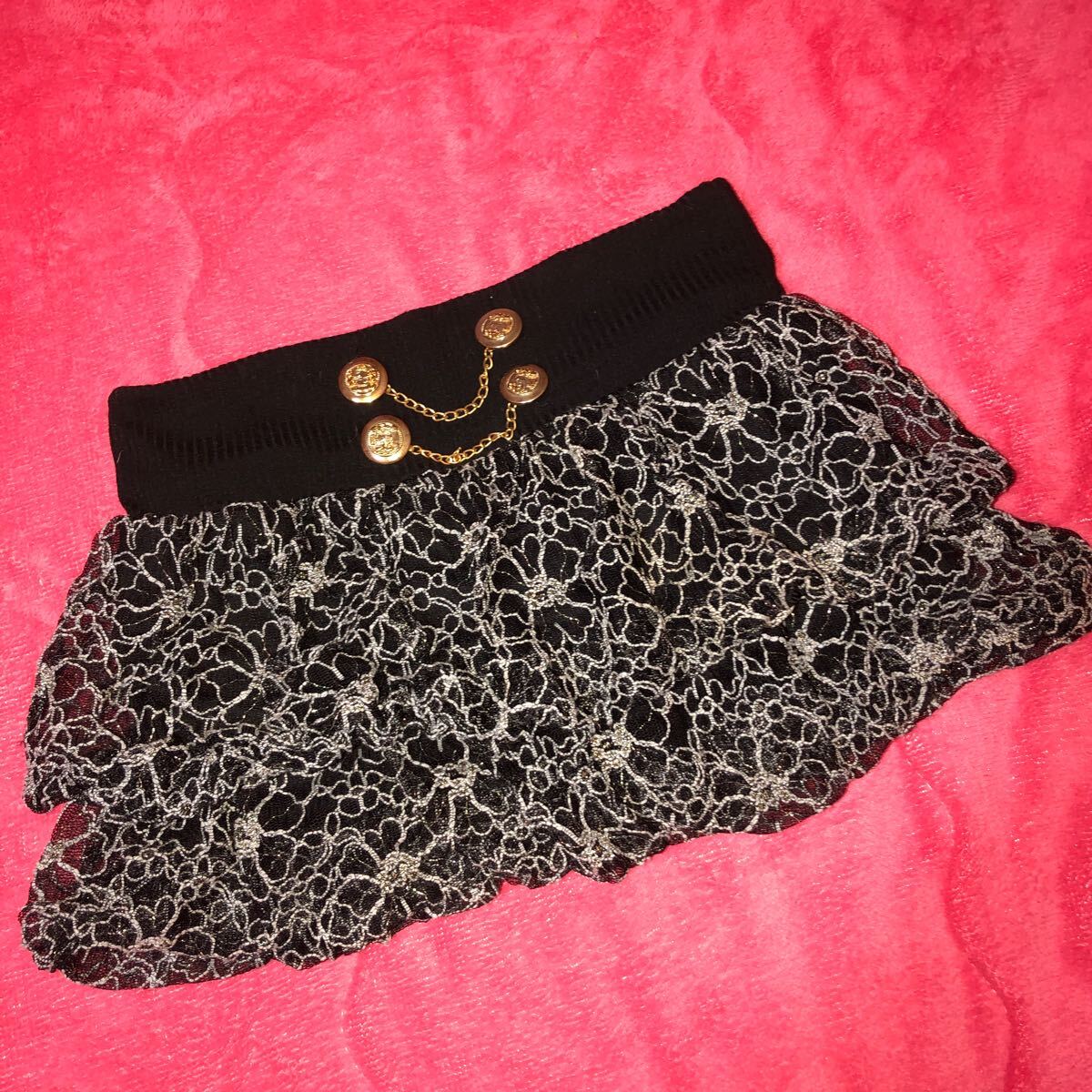 - d.i.a. 柄レース ウエストゴールドボタンチェーン 2段バルーンフリルミニスカ 美品