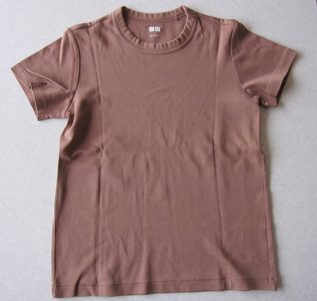 > ユニクロ UNIQLO 半袖 Tシャツ 綿 100% 茶色 ブラウン 無地 Lサイズ レディース