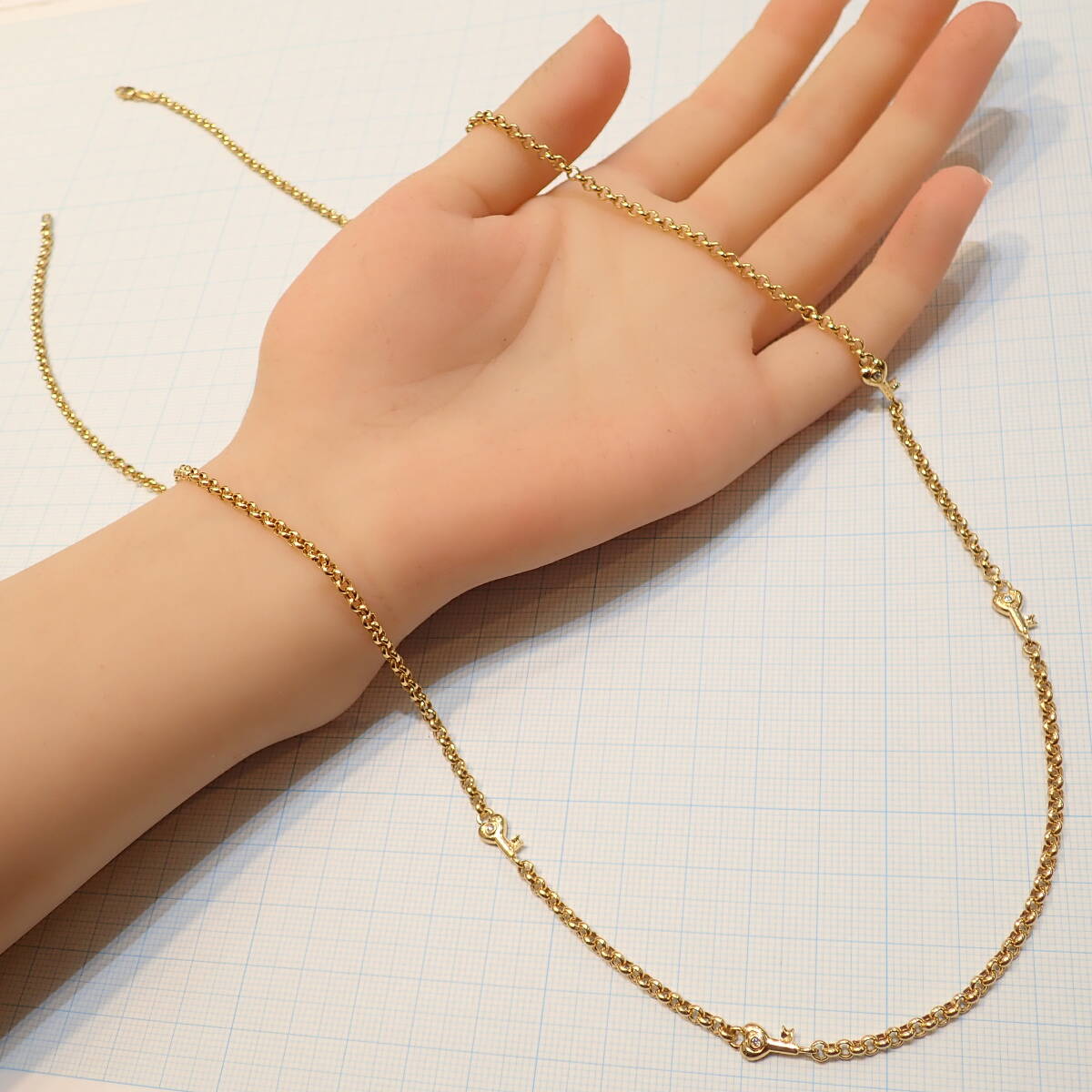 > ■750マールネックレス 8.6g 70cm■パイプ アズキ チェーン(丸小豆)■鍵 ダイヤモンド■K18YG ロングネックレス■