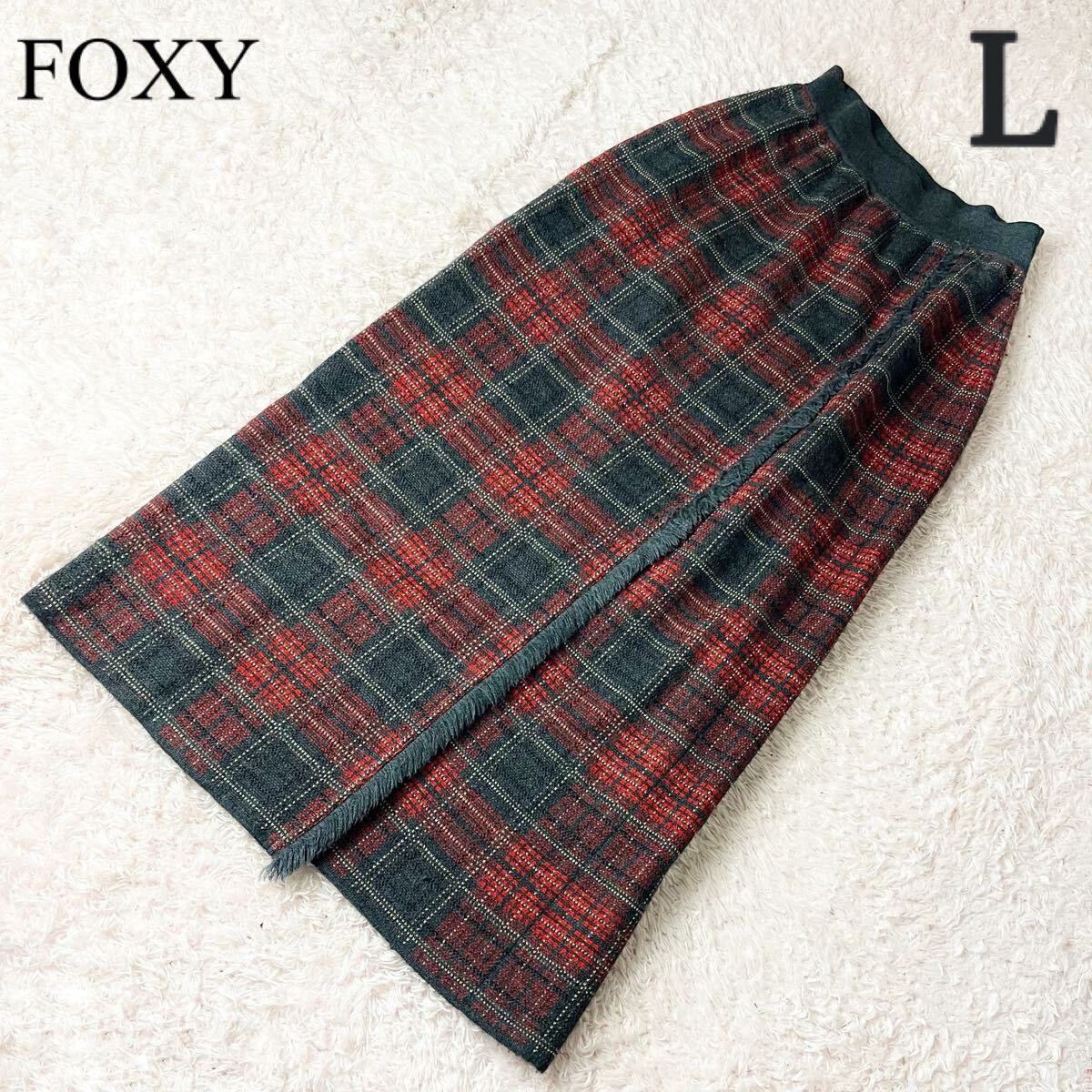 - FOXY BOUTIQUE フォクシーブティック ロングスカート ラップ 巻き フリンジ タイト フレア チェック 総柄 ブラック レッド 黒 赤40 L