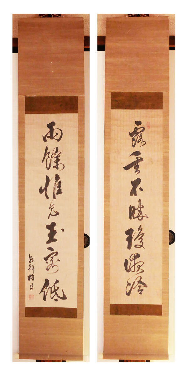 - 【真作】掛軸『 梧月 朝鮮国王中山 行書 聯 』李氏朝鮮 韓国 中国唐物唐本 李朝