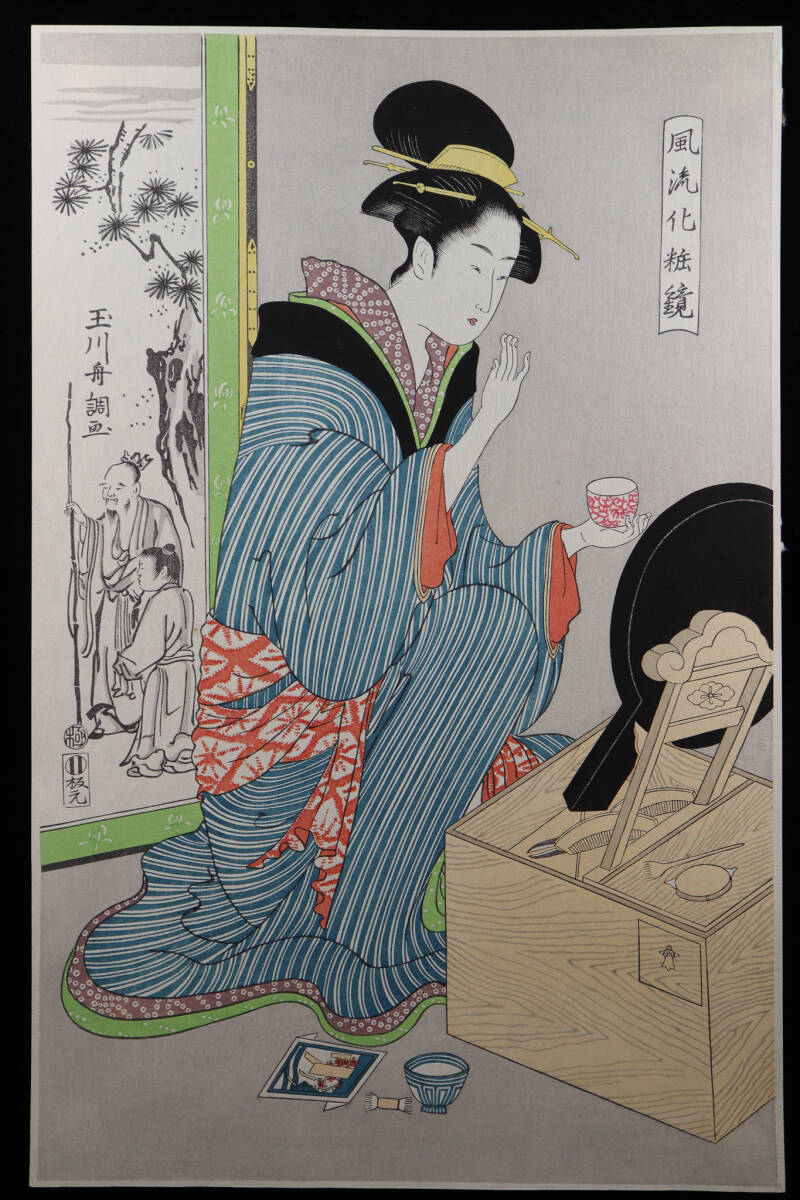 > ◇雅◇ 真作保証 玉川舟調 「風流化粧鏡」 木版画 浮世絵 錦絵 美人画 アダチ版画研究所/FT.24.8[M19.206]OXT298