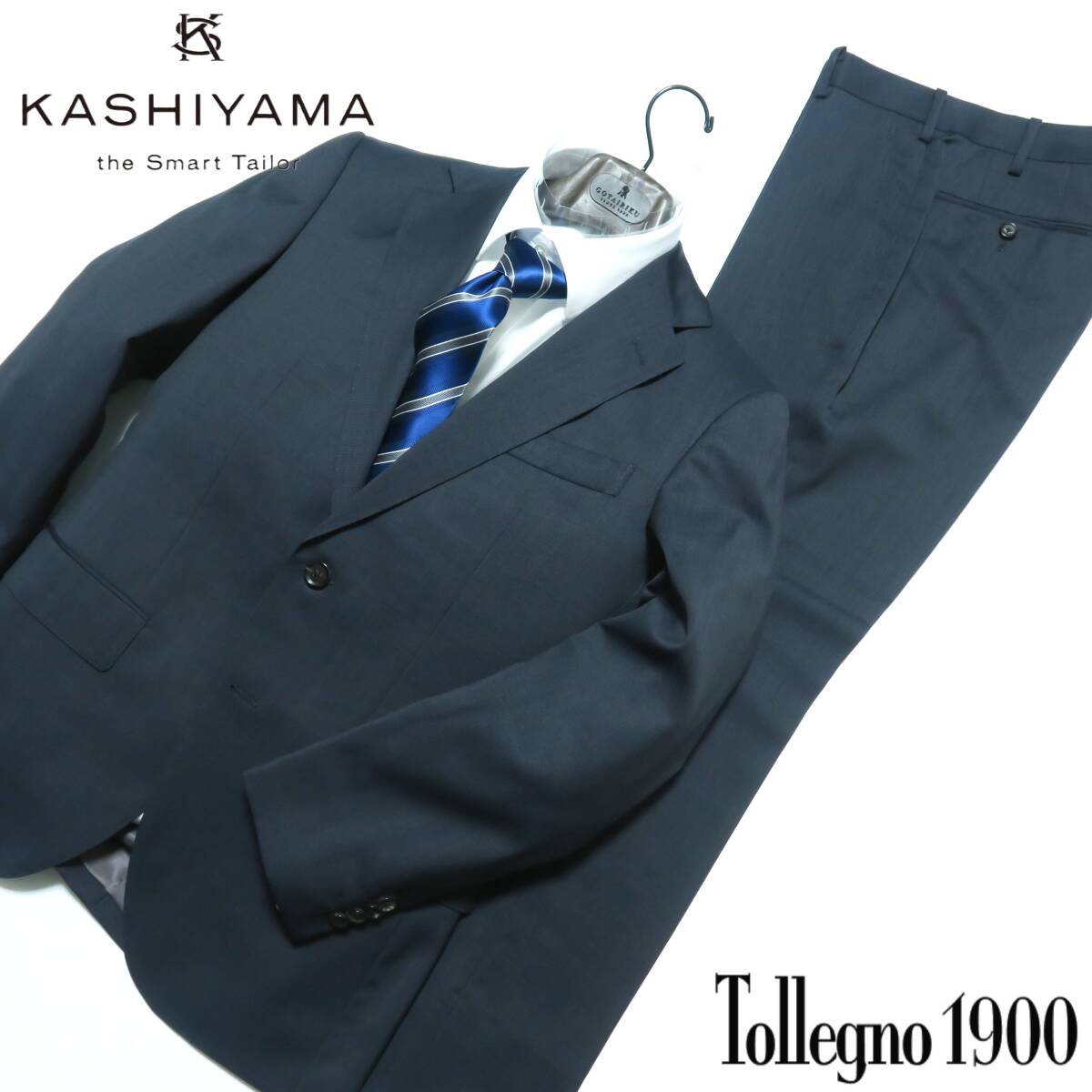 > P026■秋冬 オンワード樫山 KASHIYAMA カシヤマ 紺色系マイクロドット トレーニョ社イタリア製生地 高級シングルスーツ S YA5 W78 少々訳有