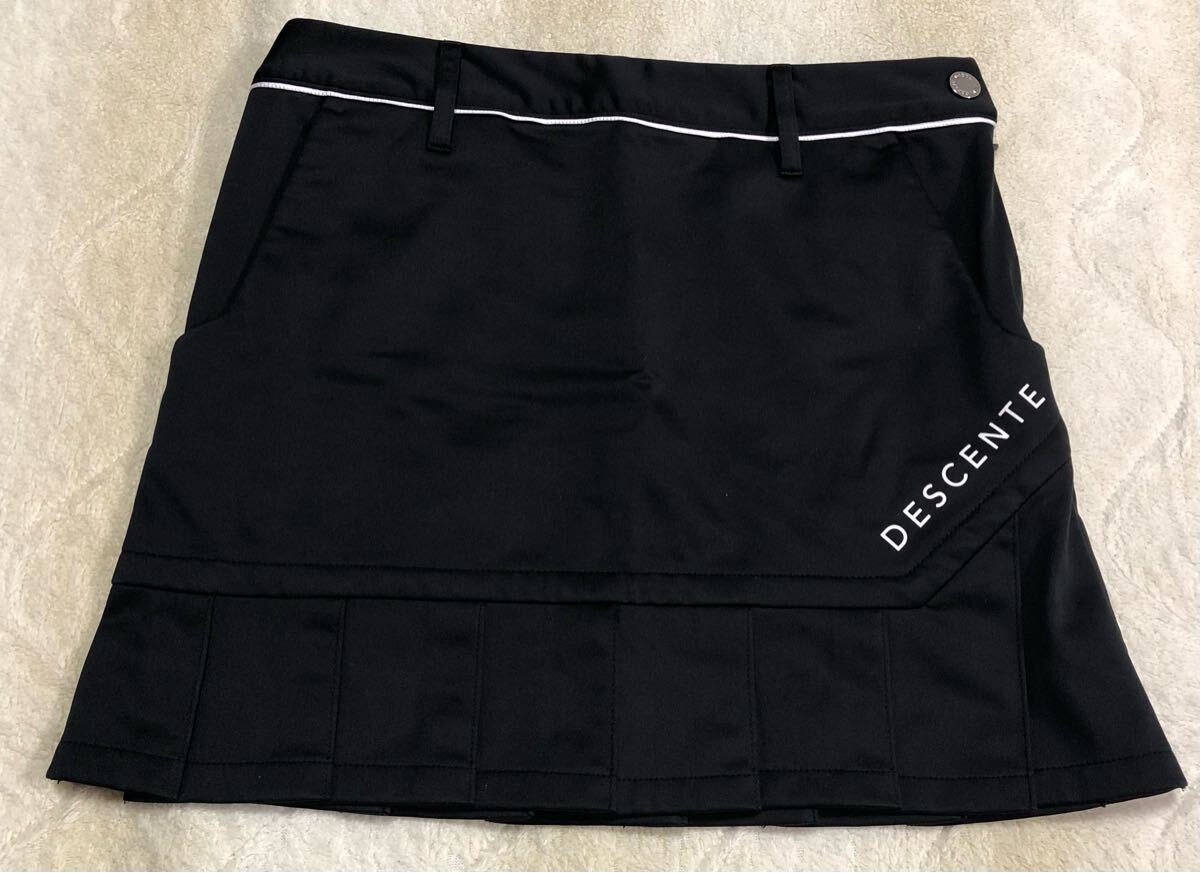 > ☆DESCENTE GOLF☆デサント ゴルフ レディース ビッグロゴ 秋冬 プリーツ ミニ スカート 61/S 黒系 裏起毛 撥水 防風 DGWSJE07