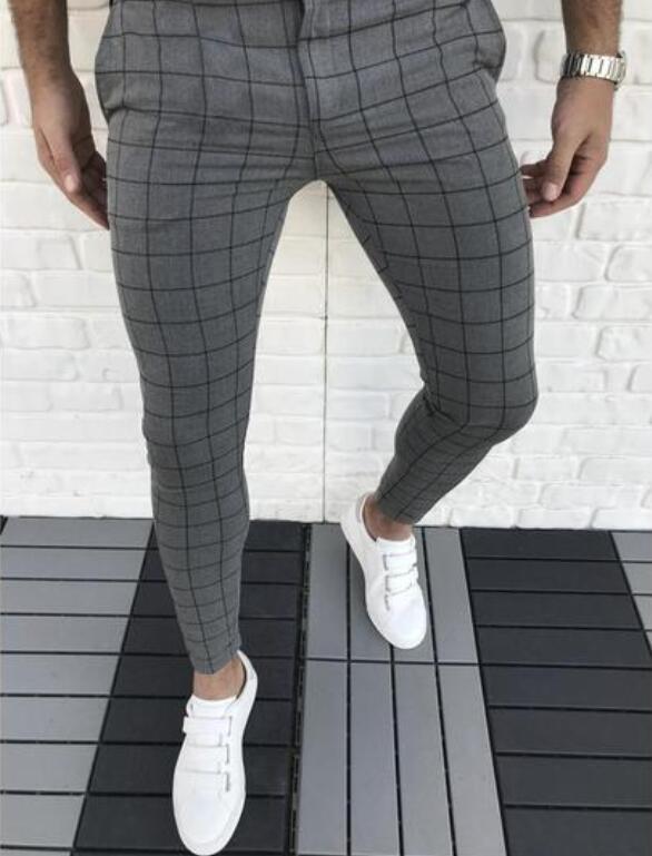 - 新入荷*S-3XL選択 スキニーパンツ メンズ チノパン スリムパンツ ストレッチ ボトムス ジョガーパンツ チェック柄 スウェットパンツ*グレー