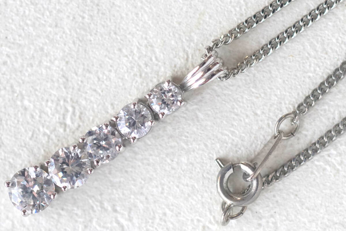 - シルバー925製トップ ジルコニア5石付き バーのネックレス