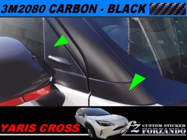 - ヤリスクロス Aピラーアンダーカバー 純正バイザー車用 3M2080カーボン調 ブラック 車種別カット済みステッカー専門店fzMXPJ10