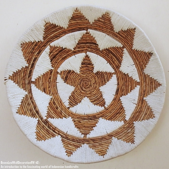 - 天然素材のウォールデコレーション 白 40cm ラウンド 円形 バナナリーフ マクラメ 天然葉 壁飾り BOHO ハンドメイド