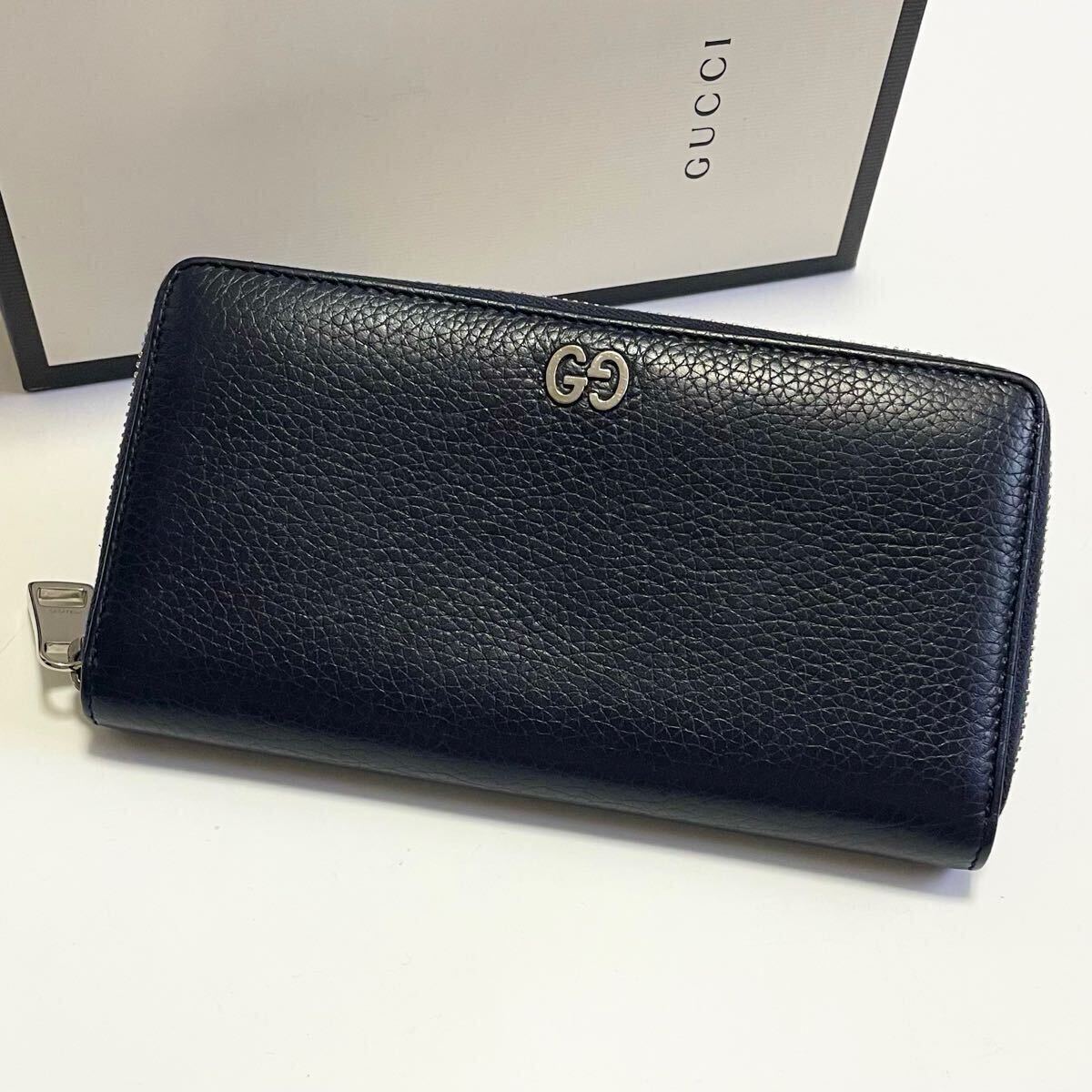 > ★GUCCI グッチ ドリアン ラウンドファスナー ジップ 長財布 レザー ネイビー 紺 メンズ 男性【鑑定済み 本物保証】