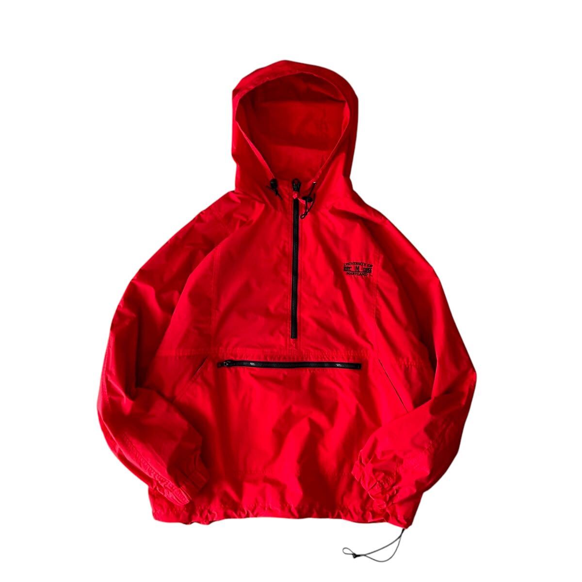 > 90’s〜 VANTAGE アノラックパーカー Lサイズ 赤 レッド ナイロン ジャケット プルオーバー 刺繍 カレッジ ドローコード パーカー フーディ
