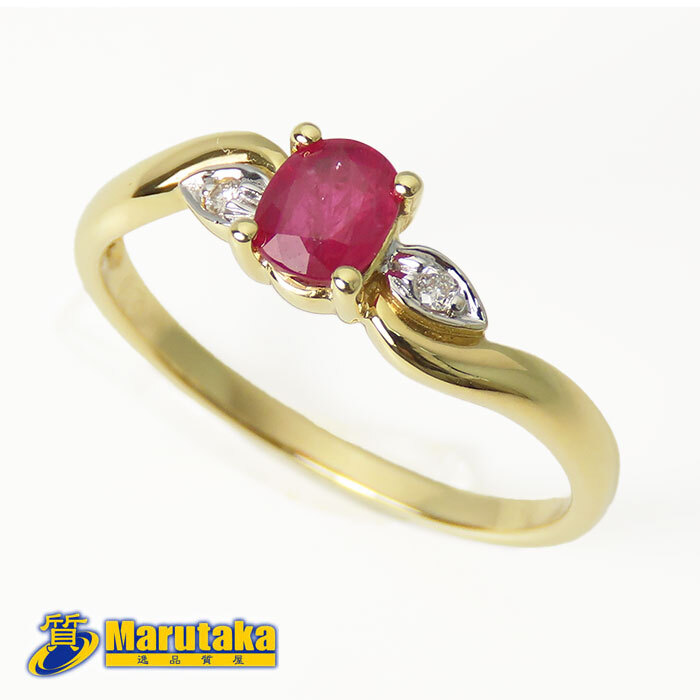 > 送料無料 K18 ルビー ダイヤモンド リング 9.5号 指輪 ソーティング付 18金イエローゴールド 逸品質屋 丸高 20-10-30