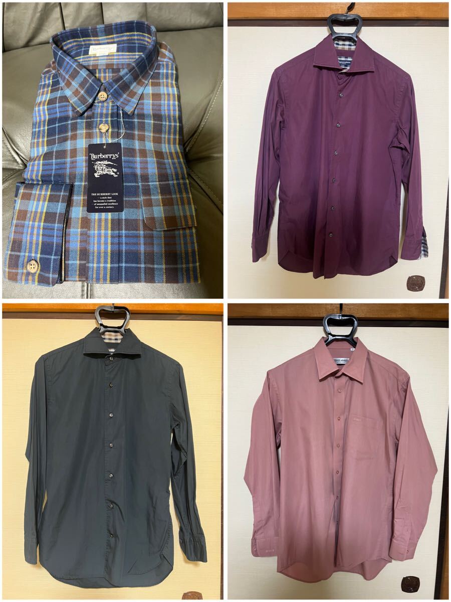 - 【YO-828】シャツ 4点セット バーバリー ジョルジオアルマーニ アクアスキュータム 長袖 長袖シャツ