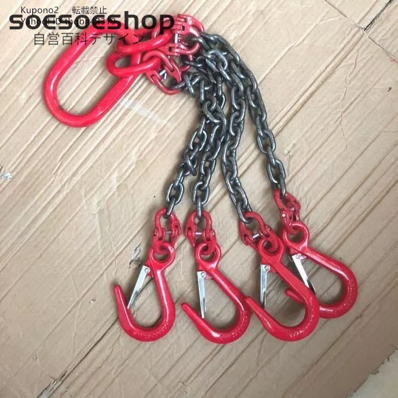 - 品質保証★運搬作業用に チェーンスリング スリングフックタイプ G80マンガン鋼製 使用荷重2t 4本吊りセット ェーン径6mm 長さ1m