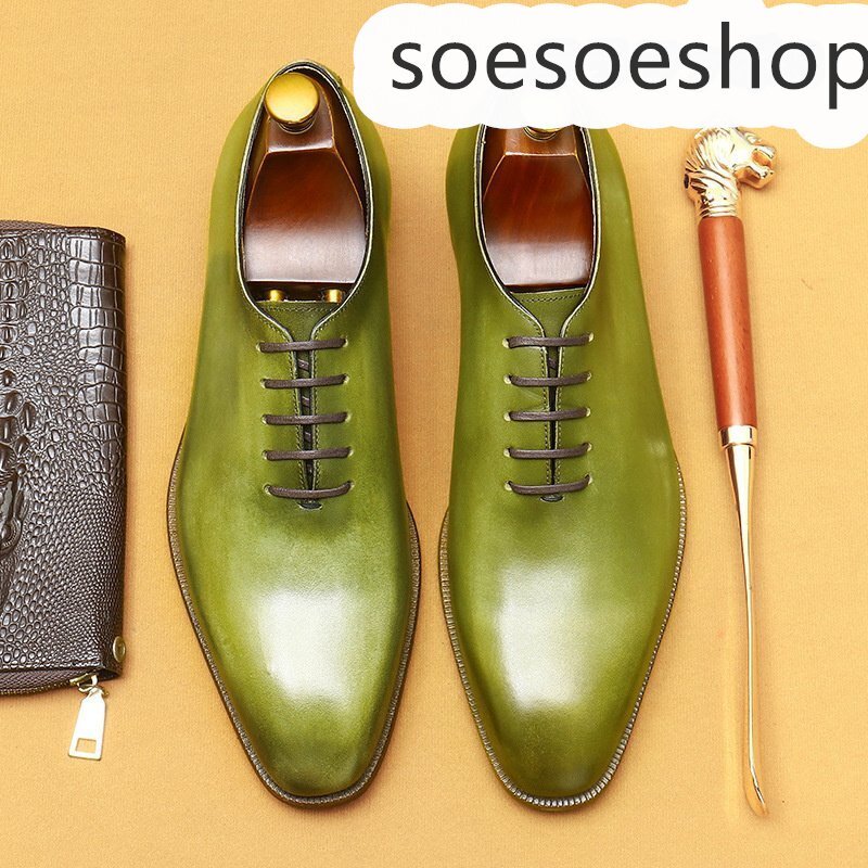 - ビジネスシューズ メンズ レザーシューズ 本革 職人手作り 紳士靴 牛革 イギリス風 フォーマル 新品 極美品 宴会 グリーン 24cm~28cm