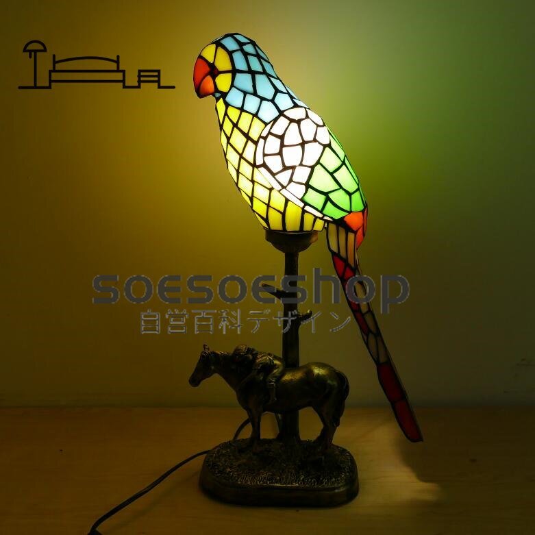 - 鸚鵡ヴィンテージ ステンドランプ ステンドグラス アンティーク 花柄 レトロな雰囲気 ティファニー ランプ
