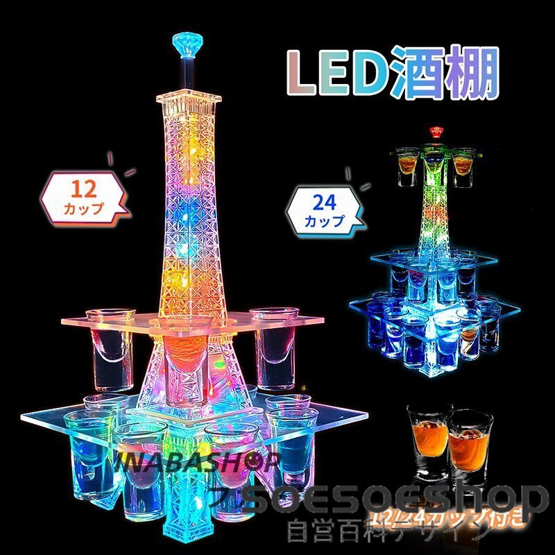 - 【グラス付き】LED酒グラス棚 酒カップホルダー 酒グラススタンド ワインラック クラブ カラオケ 居酒屋 パーティー 飲み会に最適