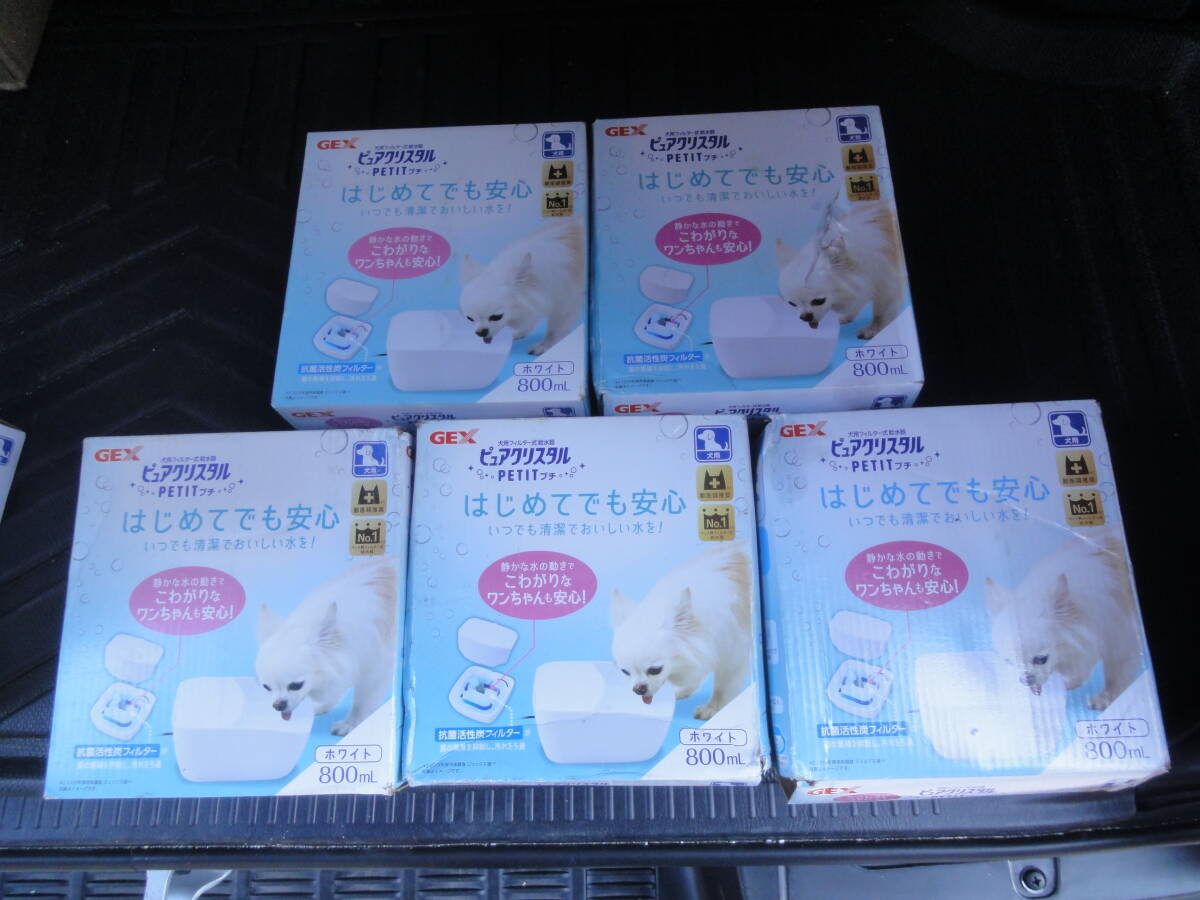 - 【GEX 犬用フィルター式給水器 ピュアクリスタルPETITプチ ホワイト800ml 5個セット】未使用品