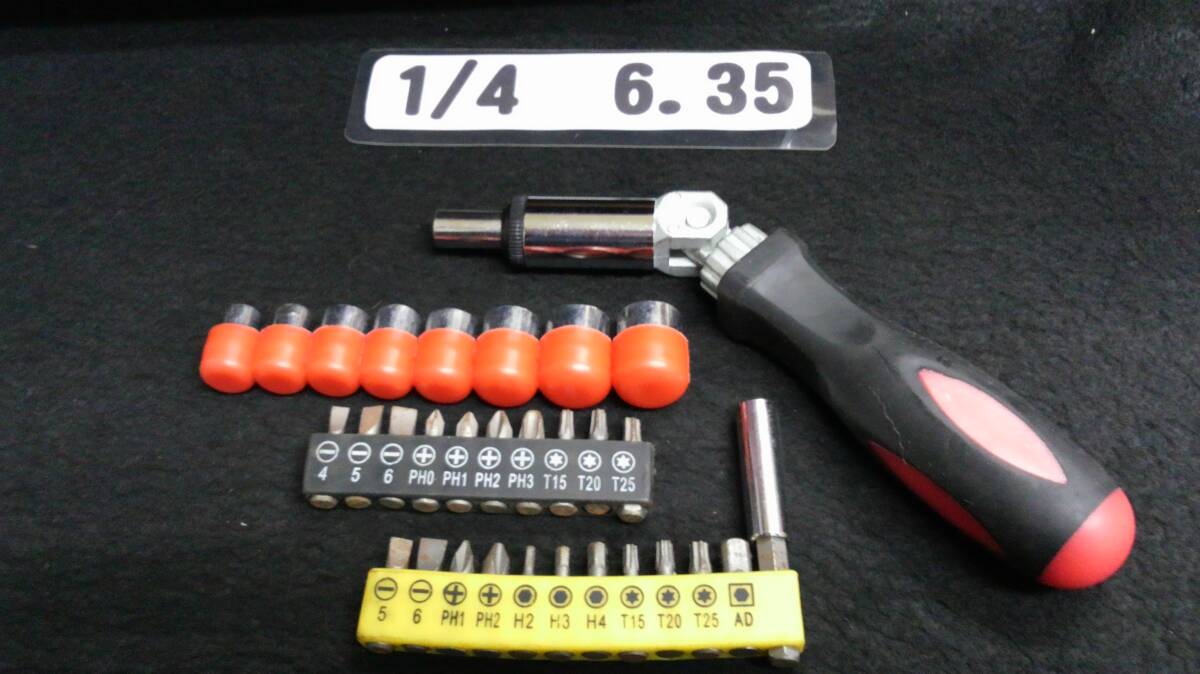 - <13027> 首振りラチェットハンドル ラチェットドライバー ビット付き 6.35 1/4 未使用