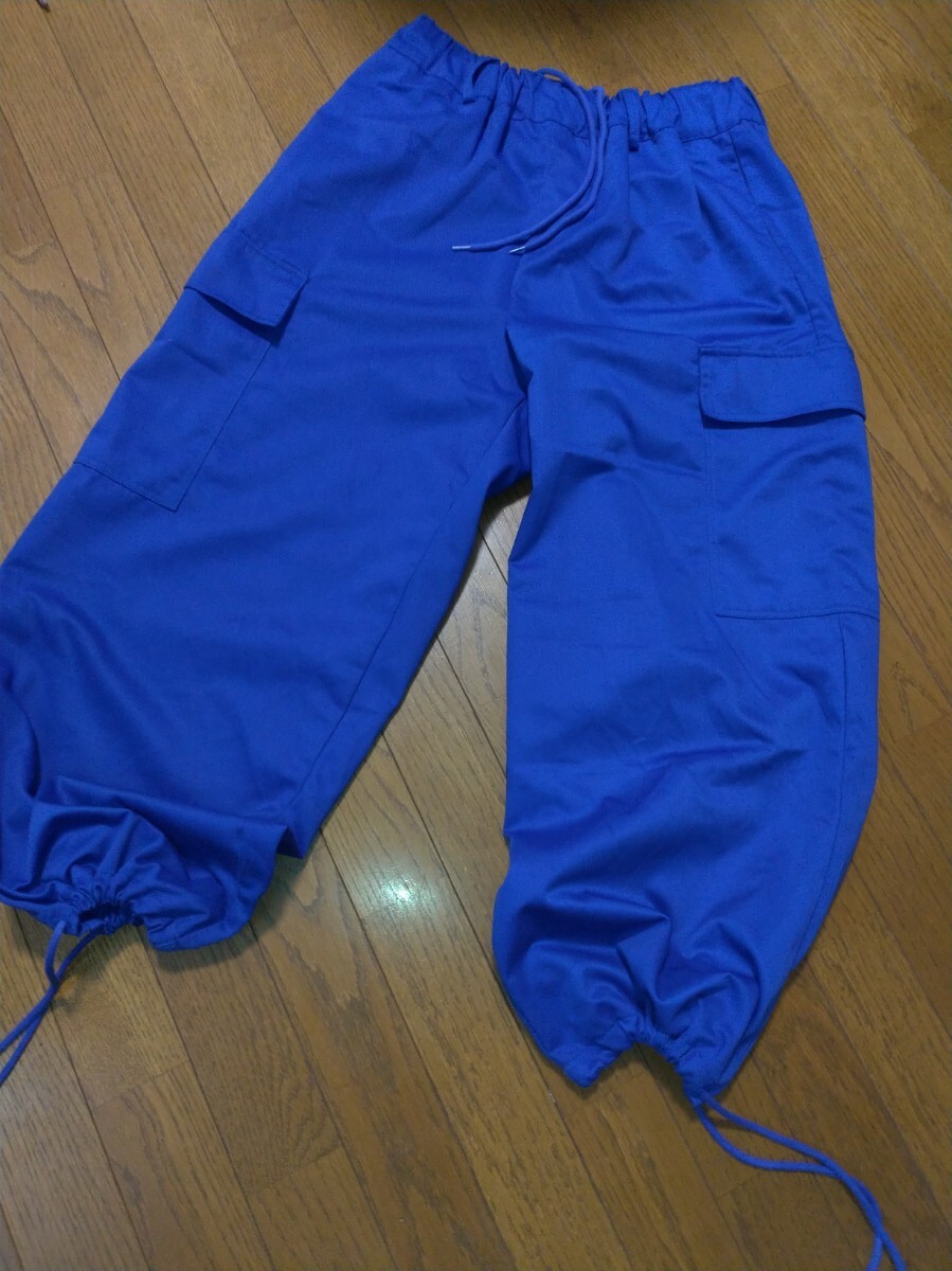 - edakka ワイド カーゴパンツ パラシュートパンツ カジュアルストリート メンズ 青 サイズM