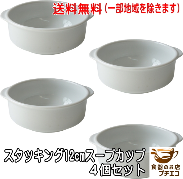 > 送料無料 スタッキング 収納 12cm 手付き グラタン皿 大 4個セット オーブン対応 食洗機対応 美濃焼 日本製