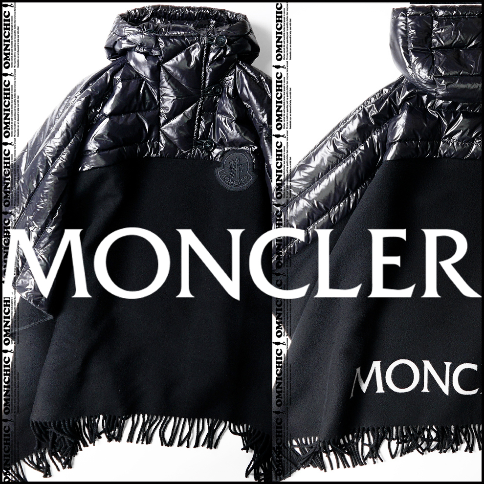 - ビックダブルロゴMANTELLA■国内正規品/新品22万【MONCLER】モンクレールイタリア製光沢ナイロン×ウールダウンケープジャケットM/ポンチョ
