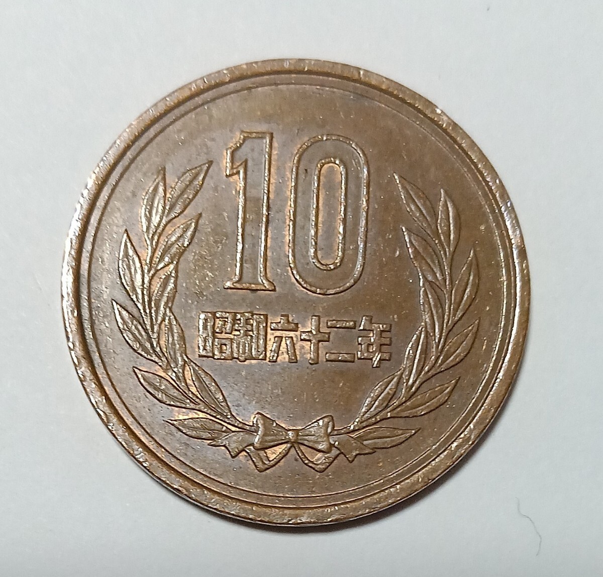 - ■②《超レア物・前期》手変わリ品 摸打 手牌★昭和62年10円玉硬貨青銅貨★1987年★品位:銅950/亜鉛40/錫10★量目:4.50g★直径:23.5mm