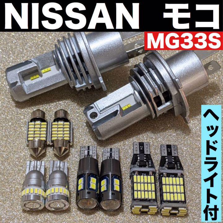 - 日産 モコ 新型 H4ヘッドライト バックランプ T10 LED ポジション球 ナンバー灯 室内灯 ルームランプ 爆光 10個セット ホワイト