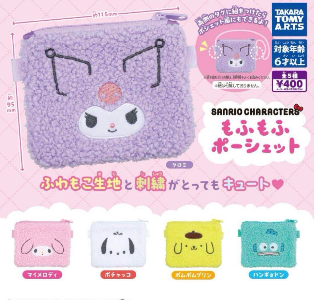 - サンリオ ガチャ もふもふポーシェット 全5種 クロミ マイメロ ポチャッコ プリン ハンギョドン