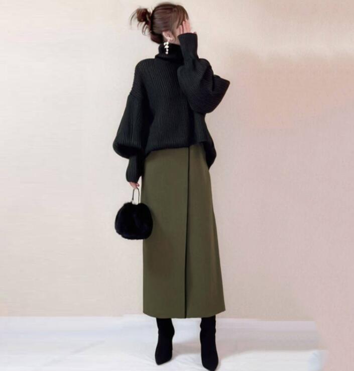 - 新入荷*セットアップ スカート レディース 大人 カジュアル ニット セーター タイトスカート 上下セット ウエストゴム ロングスカート