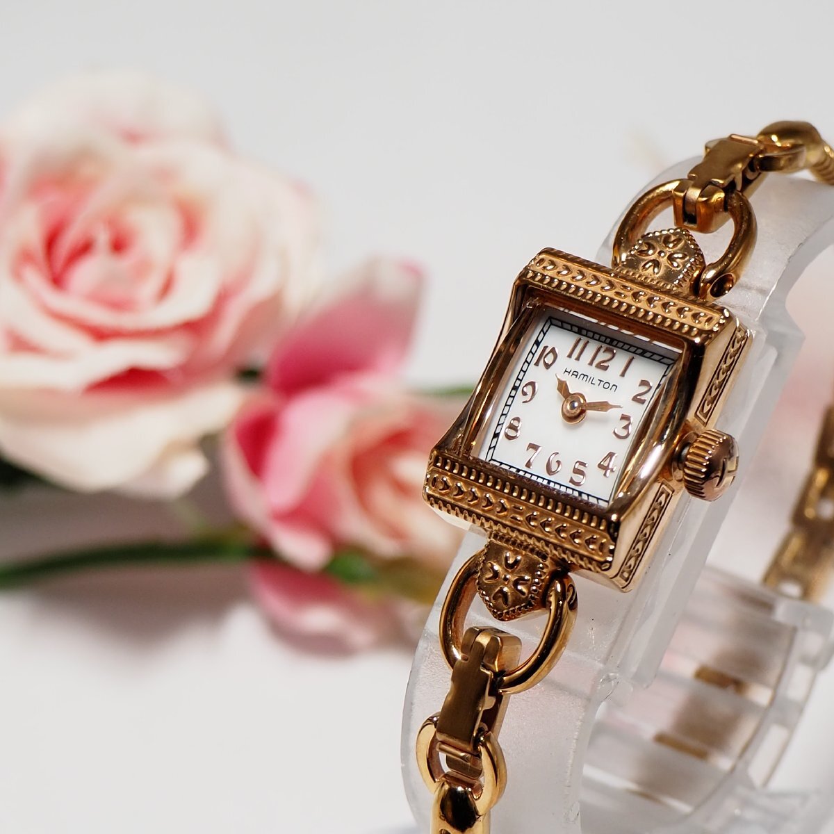 > ハミルトン HAMILTON ゴールド シェル文字盤 バングルウオッチ レディース 腕時計 F523 中古