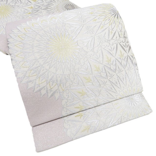 - 特選 袋帯 未使用 正絹 フォーマル 仕立て上がり 六通 優彩錦 金銀糸 銀通し 薄桜色 灰白色 きもの北條 A1155-15