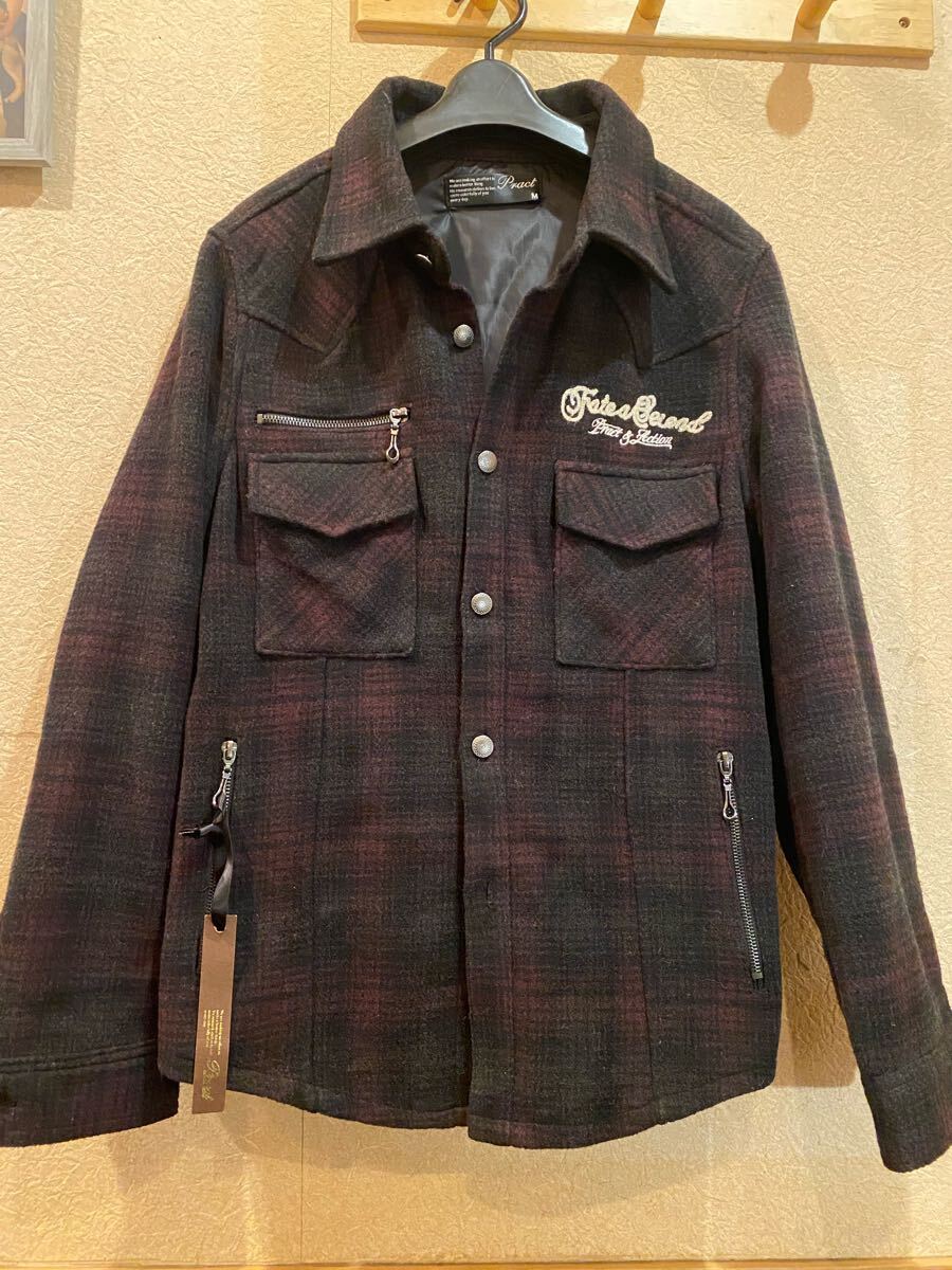 > 試着☆美品タグ付メルトンチェーン刺繍ワークジャケットチェックドリズラージャンパートラッカージャケットバイク乗りアメカジフェルト生地