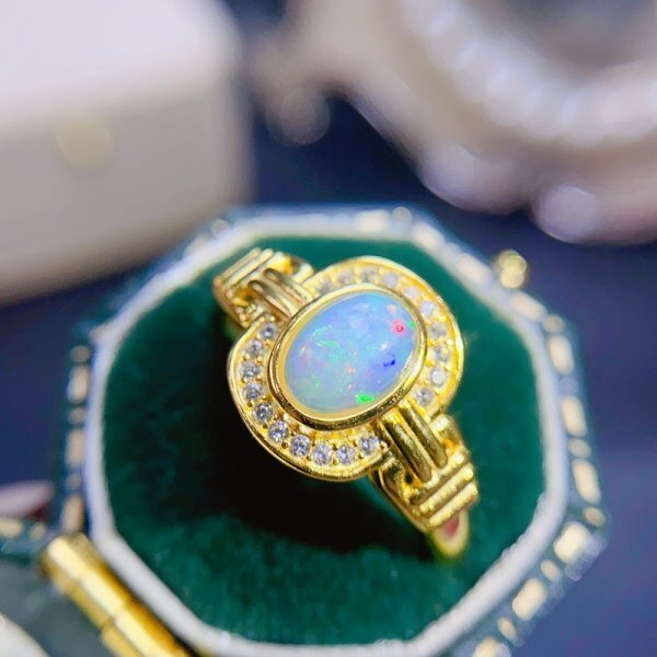 - 値下げ交渉歓迎、鑑別付き、天然オパール女性用リング、5×7mm ◆最初の入札者様に限り開始価格で購入可能_ Kk