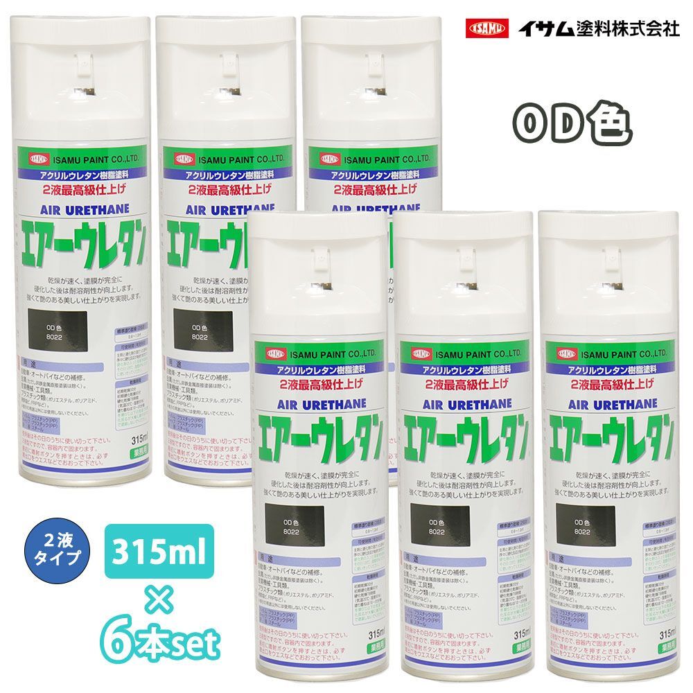 - イサム エアーウレタン 315ml 8022 OD色 6本セット / 塗料 イサムエアゾール 2液 スプレー Z24