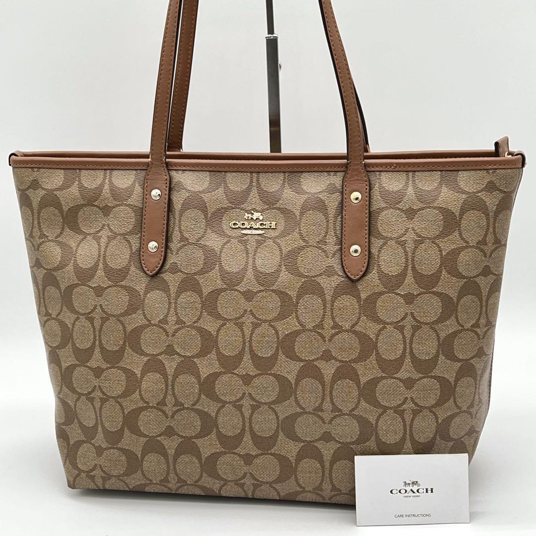 - 【良品】COACH コーチ シグネチャー トートバッグ セミショルダーバッグ A4サイズ 肩がけ フォーマル レディース ブラウン FF000220A