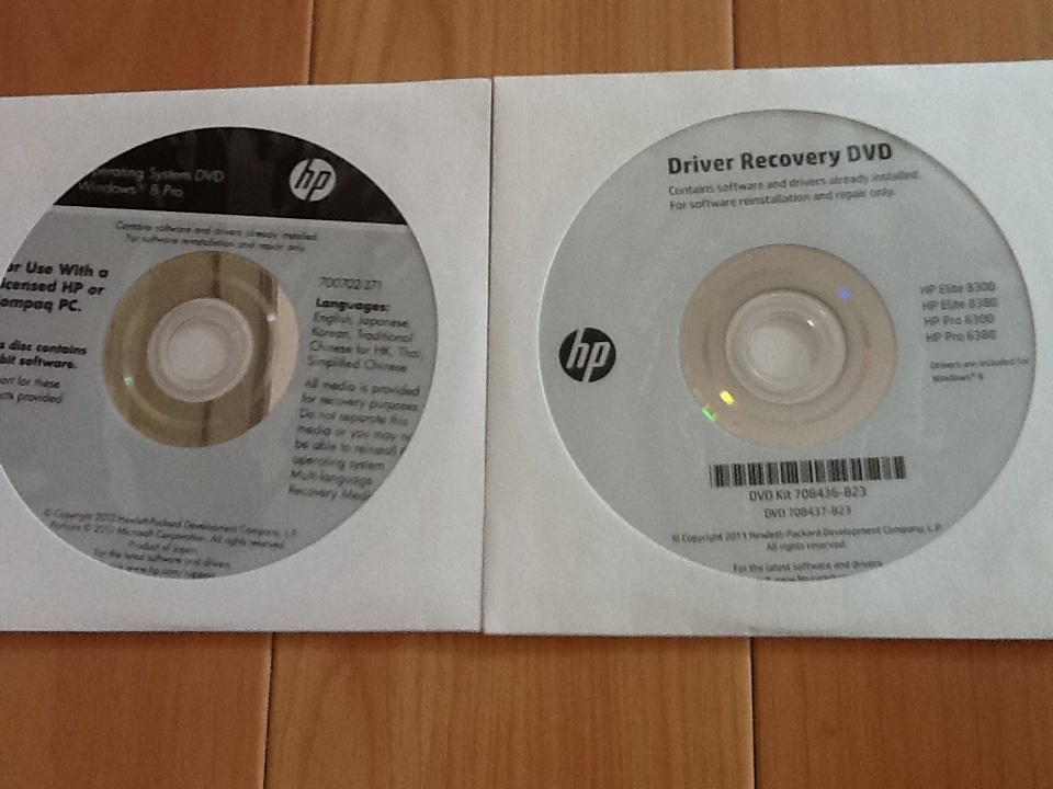 - hp Elite 8300 8380 / hp Pro 6300 6380 用リカバリDVD Windows8 Pro @未開封2枚組@