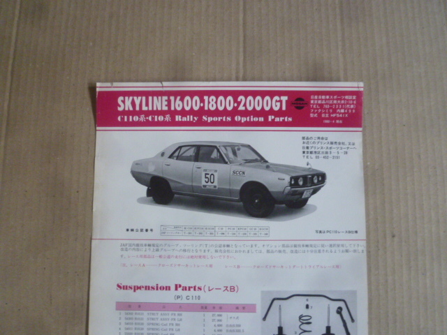 > スカイラインケンメリ110競技用日産大森スポーツ相談室ニスモレースラリー用オプションパーツカタログ16001800等もレトロオブジェ