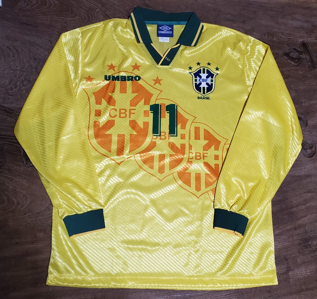 - 値下交渉 1994-1996 ブラジル代表 #11 ロマーリオ UMBRO アンブロ 長袖 選手仕様 検) 1995 BRASIL BRAZIL ROMARIO L/S AUTHENTIC SHIRT Y2K
