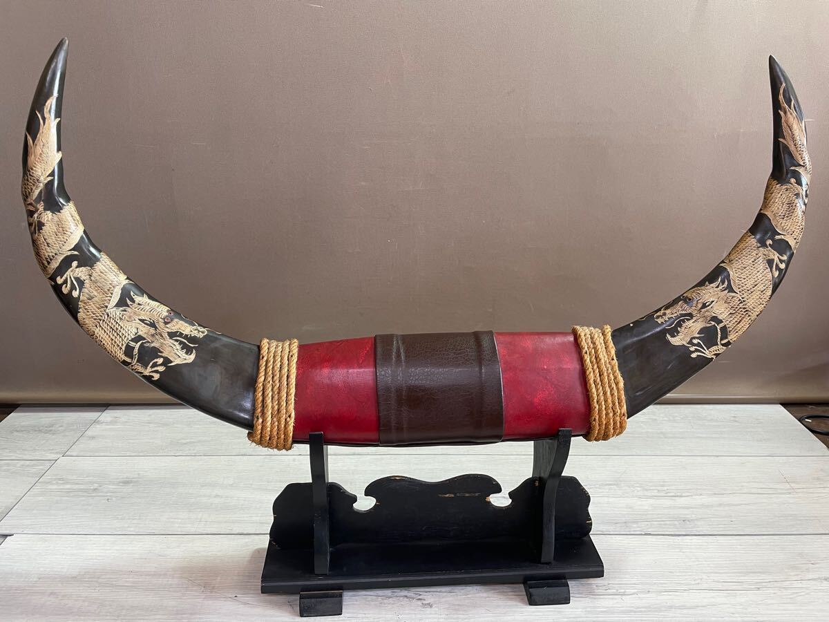 - 【飾り】牛◇角◇インテリア◇龍◇骨董品◇水牛◇ 置物◇ オブジェ