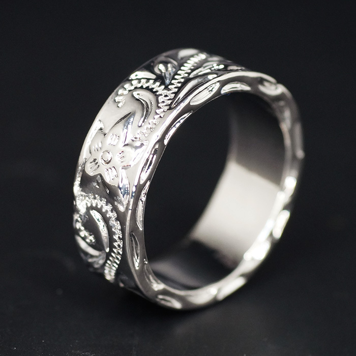 - [RING] Silver Plated エレガント 花 植物 ツタ ペイズリー繊細 彫刻 7mm ワイド シルバー リング 13号