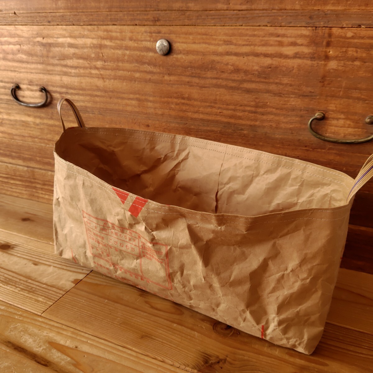 - ハンドメイド 米袋ストッカー 農協JAこがねもち米 根菜ストッカー収納バスケット 米袋リメイク 手作りhandmade